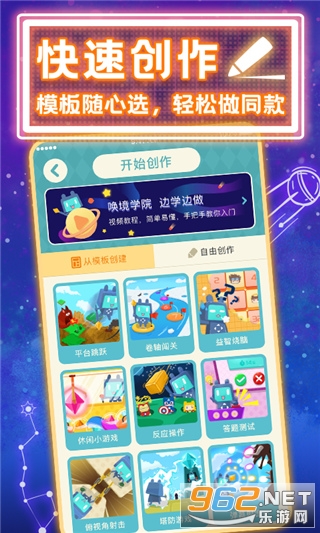 《唤镜》(EVKWORLD)提供了各种创意和有趣的游戏,玩家可以尝试创作自己的小游戏,同时也能在游戏中与其他玩家互动,体验游戏弹幕的乐趣。在唤境中玩游戏可以获得经验与奖励,用来升级应用内的星球和解锁收集的图鉴。此外,唤境还提供了手机编辑器、多款模板、素材库和学院等多项特色功能。该应用旨在为用户提供新颖有趣的内容创作和互动体验。