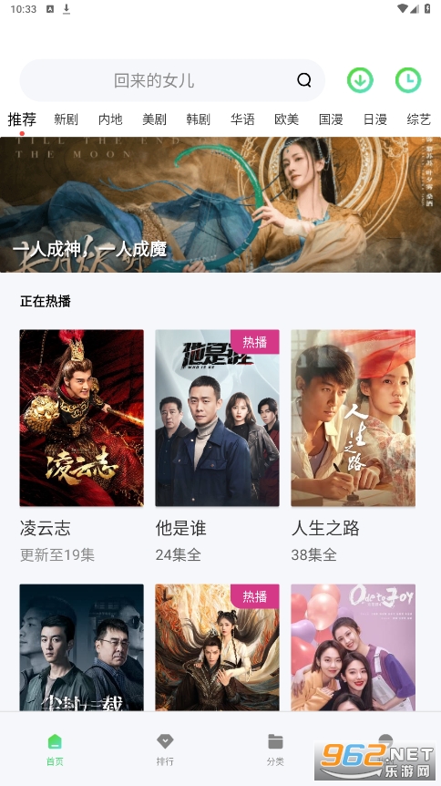 乐享云视听是一款手机安卓app,提供在线音视频播放服务。用户可以在乐享云视听中观看电影、电视剧、综艺节目等各类视频内容,并提供海量的高清资源,大家可以自由搜剧,在线观看,另外,乐享云视听还支持离线下载功能,用户可以把想要收藏的影片下载到本地,在没有网络的情况下也能愉快观看。