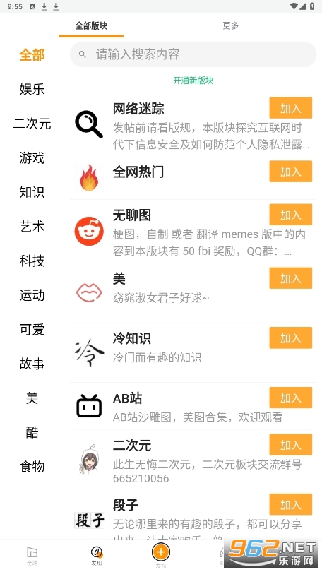 1、兴趣圈子,二次元,游戏,艺术,科技等众多兴趣圈子让你随心选择加入。