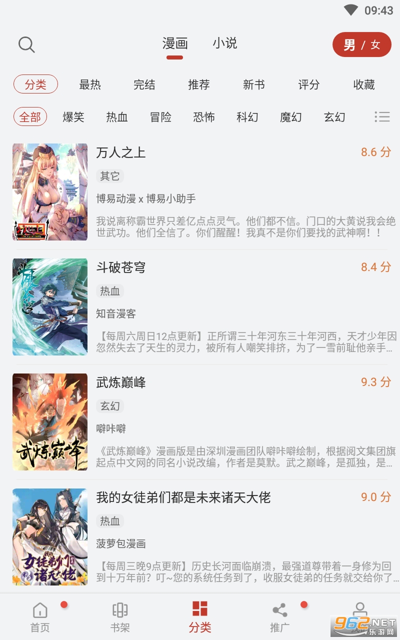 漫画大师app这里的精彩漫画作品都是非常多的哦,分类也是非常齐全的哦,各种好看的漫画都是可以看到,而且更新进度都是非常快的哦,给你带来更加畅快的追漫体验,从此以后在手机上看漫画会变得更加轻松。