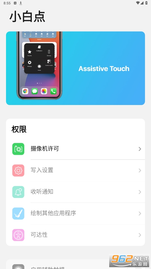 7、权限都打开后点击启动辅助触摸,即可启动“小白点”;