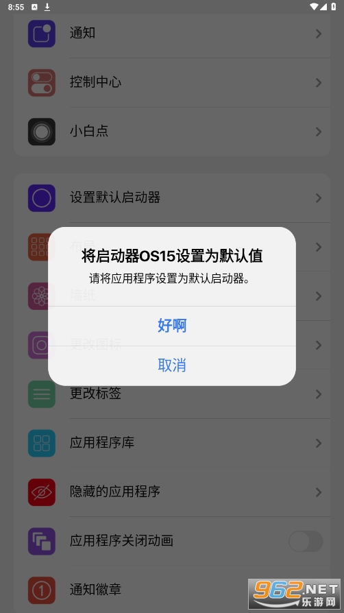 4、最后设置浣熊ios15启动器为默认启动器即可设置成苹果桌面。