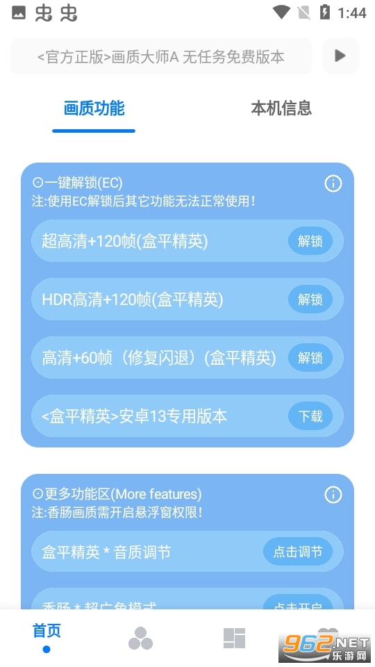 《画质大师A》一款为吃鸡游戏打造的画质助手软件,你可以免费使用,适配各种不同的安卓手机,一键进行画质改善,还可以选择不同的帧数,还有着丰富的选项可以选择,让你享受更好的吃鸡体验。