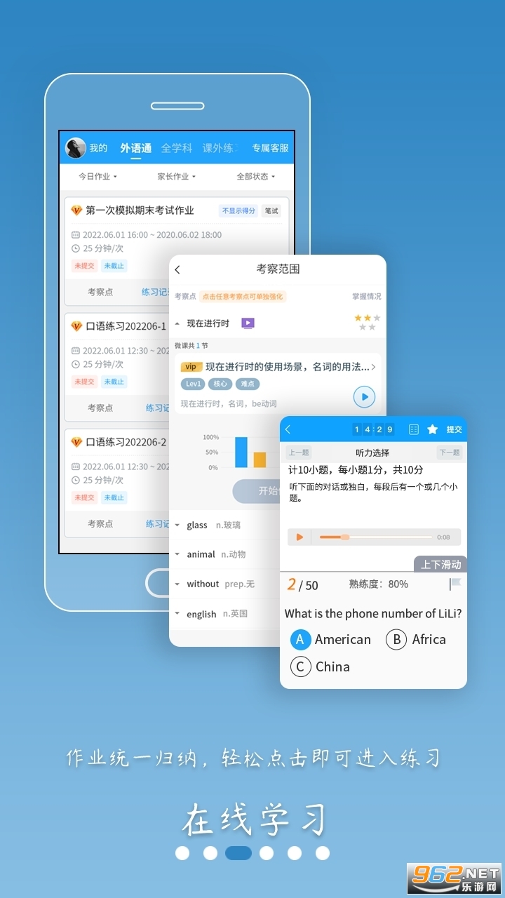 所有语言内容由外籍教师精心录制,学习内容均由英语教育专家、一线优秀教育倾力打 造,同时免费提供题库的更新。