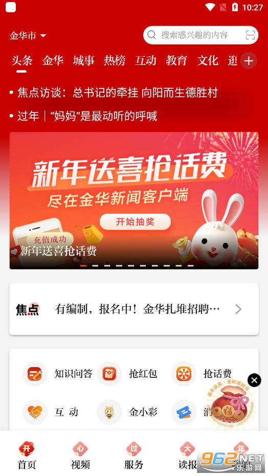 《金华新闻app》一款本地的新闻资讯平台,在这里你将接受各种不同形式的资讯和新闻,让你了解最新的动态,软件的操作简单容易上手,包括了各种不同的板块,软件的操作简单容易上手,现在就来下载试试吧!
