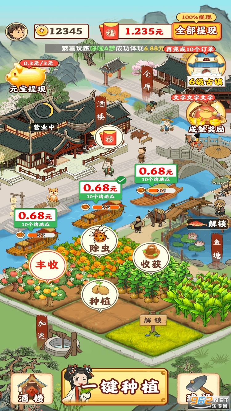 《江南小镇游戏》是一款最近很热门的赚钱红包游戏,玩家在游戏中的任务就是经营好自己的江南小镇,通过种植果蔬以及发挥在那经营小镇来赚取红包现金奖励,画面精美,玩法上手轻松。喜欢的话就快来下载吧!