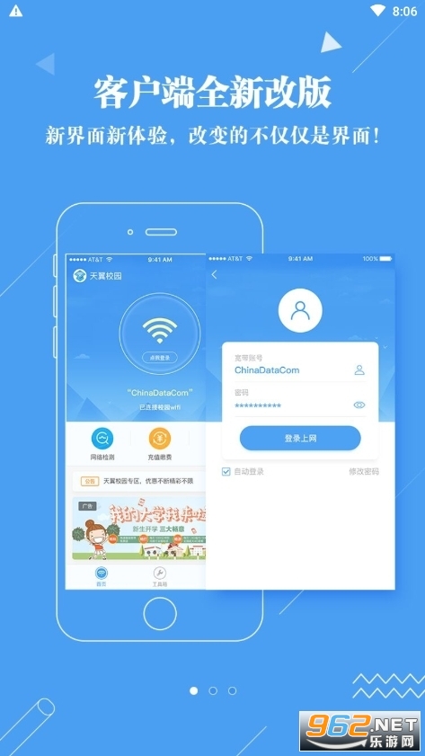 3、更多免费增值服务尽在天翼宽带客户端,例如:天翼视讯、网上营业厅、189邮箱、院线通、天气预报等等。