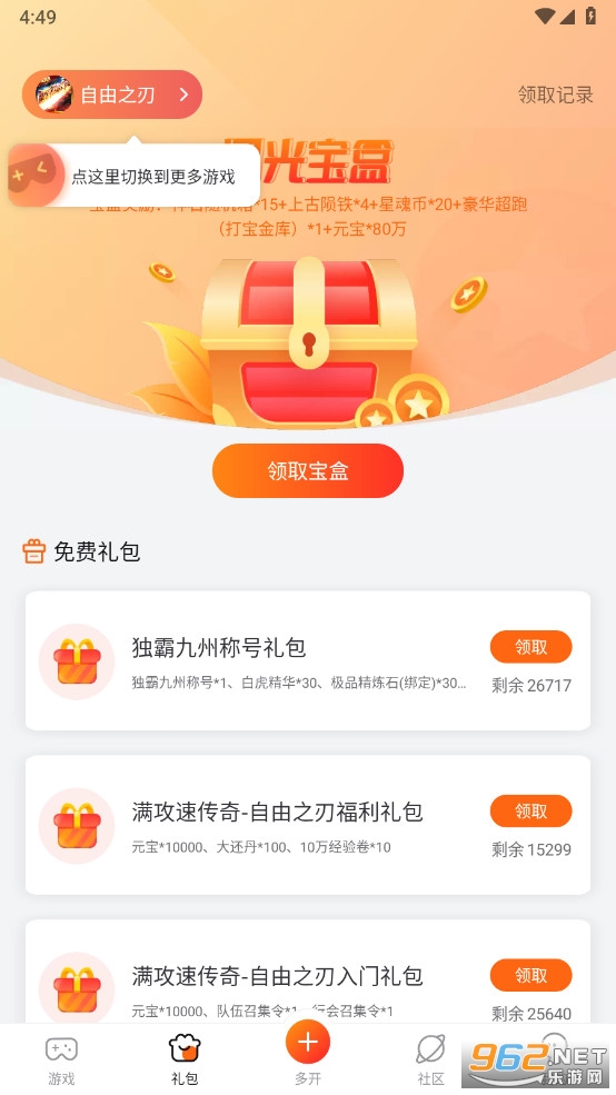 《贪玩游戏盒子安卓版》是江西贪玩信息技术有限公司推出的一款手游盒子,贪玩游戏盒app中有着大量经典的传奇手游,朋友们可以选择喜欢的传奇游戏去下载玩耍,可以前往礼包栏目去领取各种福利礼包,盒子还支持多开,可以多开自动挂机,轻松体验游戏。