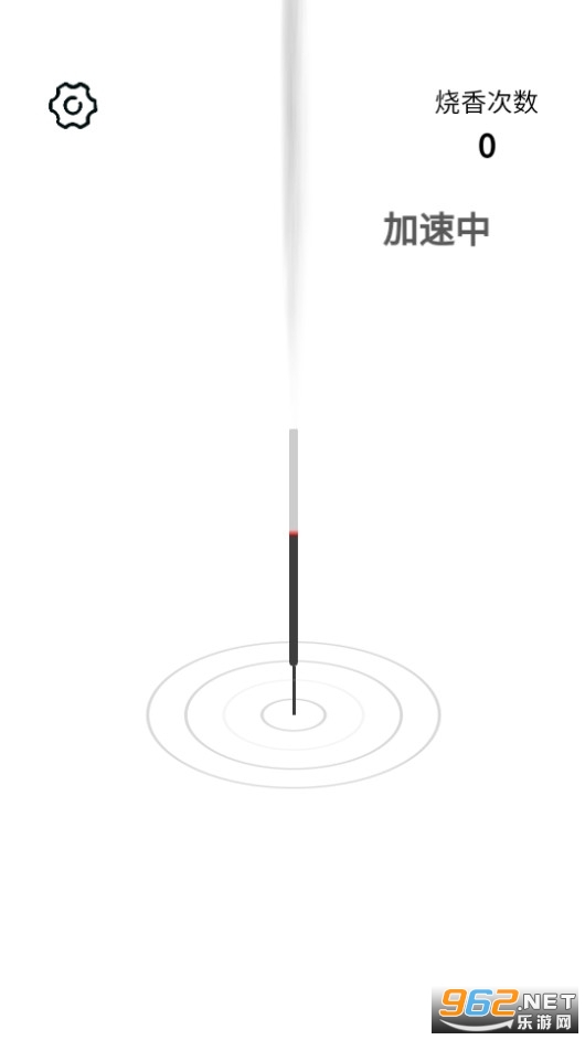 1.打开应用,我们就能看到屏幕中间竖着一柱香,上方有一团火,然后就什么都没有了。