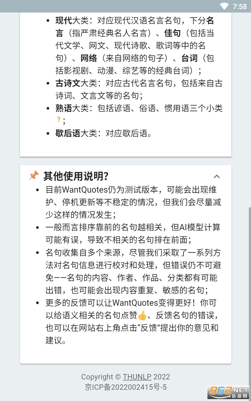 《据意查句(wantquotes)》是非常好用的由清华大学打造的小工具app,只需要输入你想要表达的意思,就可以自动搜索能够表达这些意思的句子,搜索的范围很大,包括各种诗词古文以及歇后语。有需求的话就快来下载吧!