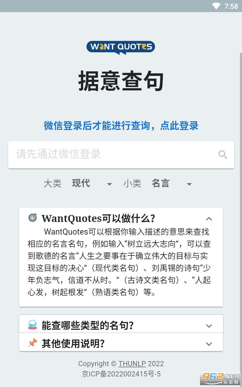 wantquotes据意查句app下载2026最新版是清华大学全新推出的写作神器,能够为用户提供最全面的服务,一句话就能够轻松生成出不同的辞藻来,用古诗词来书写浪漫,并且重复率也是非常低,能够让大家爱上诗词,学习到更多的知识,弘扬优秀的传统文化,不断提高大家的审美。