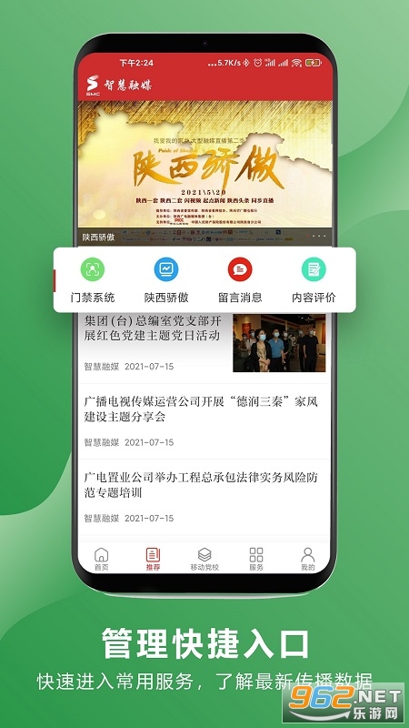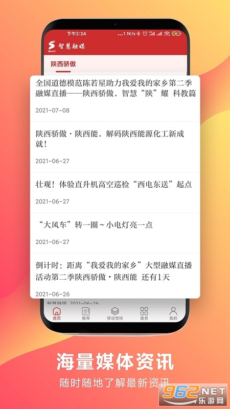 《陕西广电融媒体集团app》即《智慧融媒app》,是陕西广电融媒体集团有限公司官方app,在这里用户可以了解到最新的新闻资讯,阅读海量的融媒热点,学习党课,加强党员的学习意识,为广大的党员群众提供一个随时随地学习的平台,还为集团的员工提供了一个办公自动化,信息化平台,大大提高了员工的工作效率!