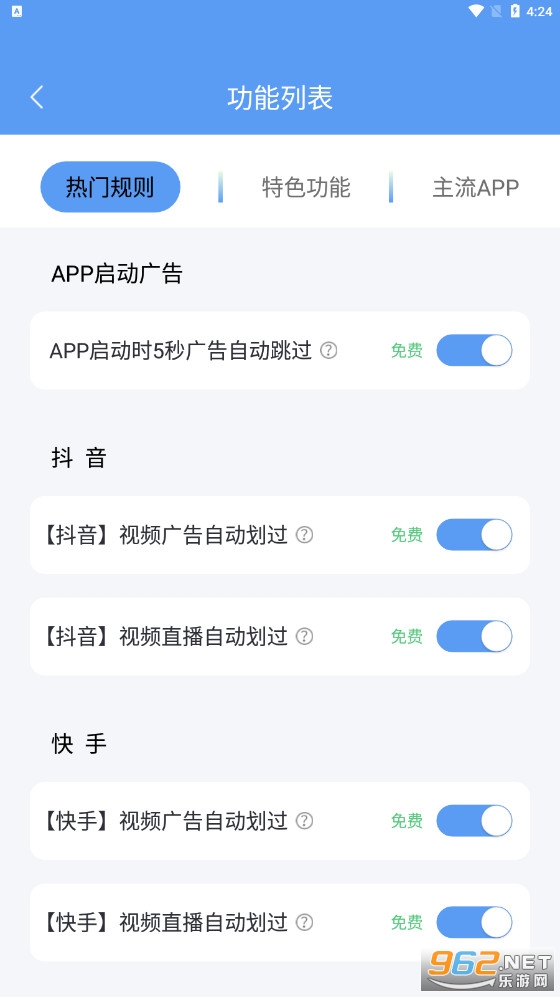 3、广告拦截:自动跳过APP开启页广告,告别无聊的广告时间;