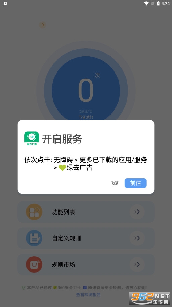 《绿去广告破解版2026》为大家带来超好用的跳广告神器,无需root直接完成各种app的广告跳过,软件的操作简单容易上手,你可以选择开启不同的功能,还有着不同的跳过规则可以自由的定制,让你更好的使用手机上的app。