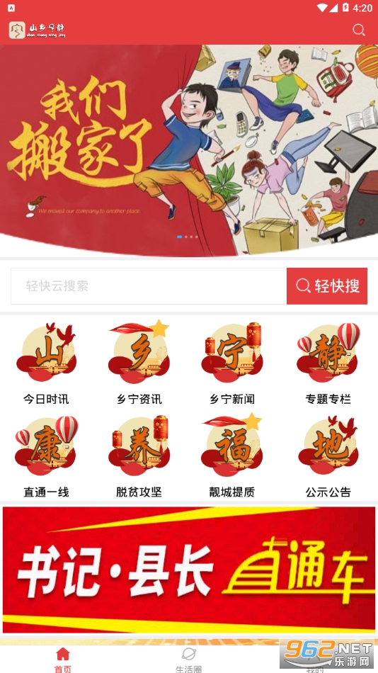 本地生活服务平台,拥有政务,新闻和服务功能,让大家足不出户也可以了解身边的大小事,政务热点,在线办事,节省了很多的时间,便民,利民!