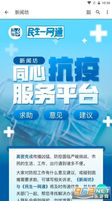 《新闻坊同心抗疫平台》即《新闻坊民生一网通》于上月28日晚正式上线,上海目前的疫情防控形势严峻复杂,故上海开通了多条“疫情防控工作问题建议征集”通道,目前仍在上海居家隔离的市民朋友们,可以通过留言求助的方式来反馈目前所面临的困难问题。