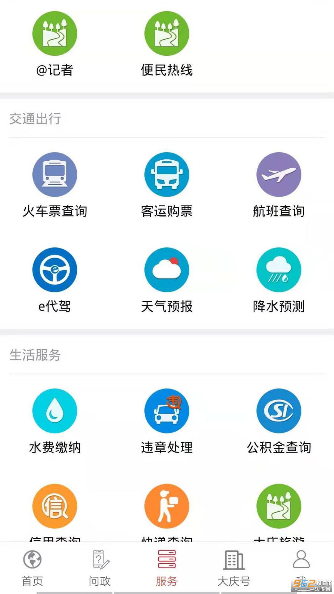 3、服务平台,可查询记者热线、便民热线,以及其他交通出行、生活服务等相关的服务网站。