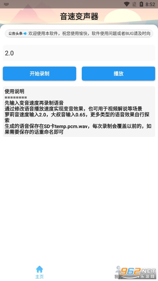 一款好用简单的变声器软件,软件没有任何的广告也是完全免费的,你可以直接开始录制调整不同的数值来改变声音的情况,你可以自己来进行探索调整,推荐给需要变声器软件的用户。