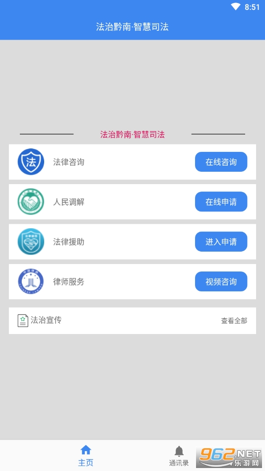 黔南智慧司法APP是一款为该地区提供免费专业的法律保护服务的手机软件。在社会中总是会出现各种各样的侵权问题。那么这个时候就可以利用这个软件来找寻法律的武器保护自己。这个平台上面提供超全面的法律咨询服务,不管是任何类型的问题,都可以在平台上面找到相应的保护方法。