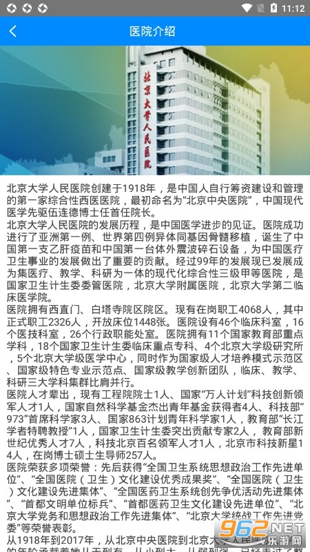 北京大学人民医院为方便患者就医,推出手机app,实现功能:医院介绍、手机挂号、实时叫号、查报告单、住院跟踪、门诊缴费、医生团队、医院新闻。