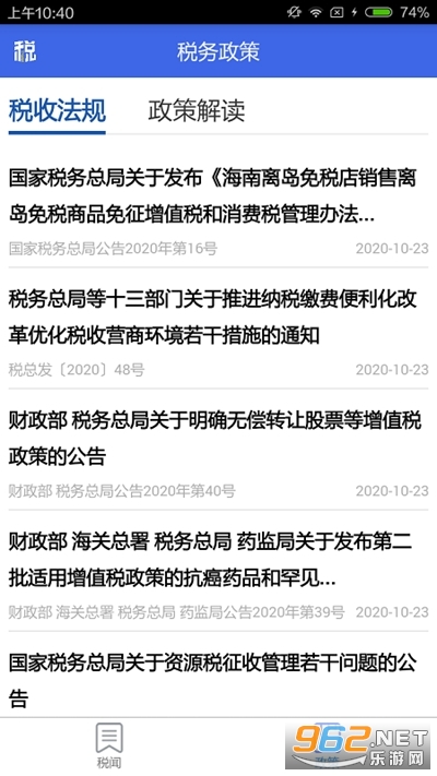 宁夏税务APP:首页提供最新的通知公告,税收新闻,政策法规等内容;查询板块提供公共查询和自我查询;办税板块提供申报、纳税、登记认定等网上业务办理。