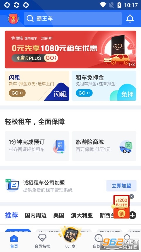 【特惠】周三会员日,限时抢0元租车,领券立减60元!