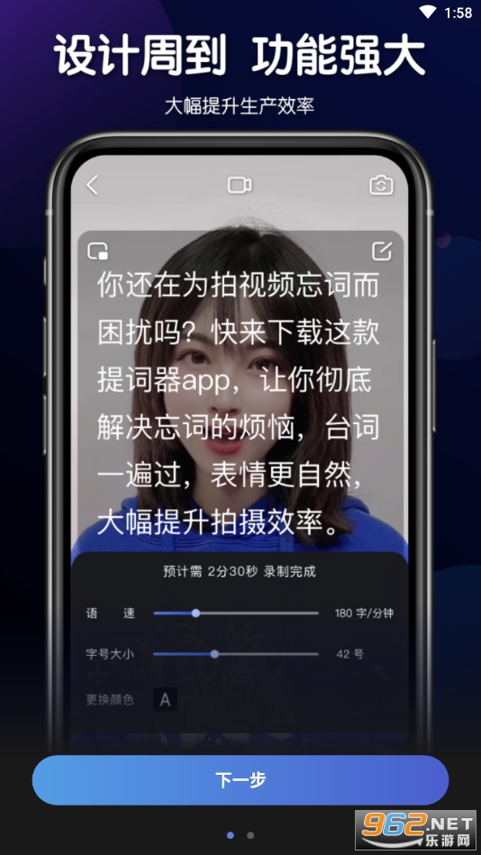 【提词器大师】支持横屏/竖屏提词,支持自定义颜色、透明度、大小、位置等等,可谓是个提词大师。