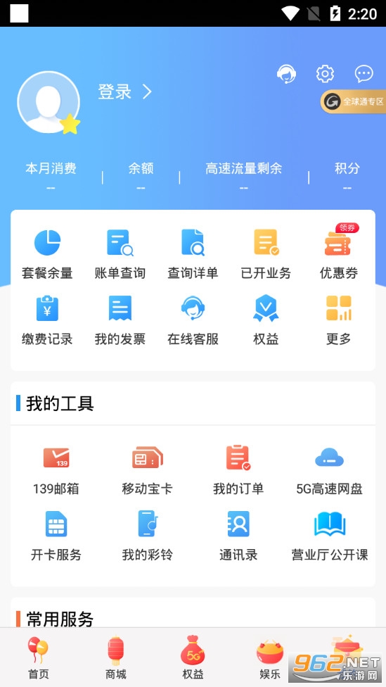 适合云南移动用户使用的移动服务平台,有着首页、商城、权益、娱乐和我的多个栏目,有着众多的功能可以使用,可以查看话费、流量等等,有需要的朋友可以下载试试。