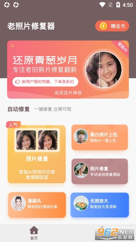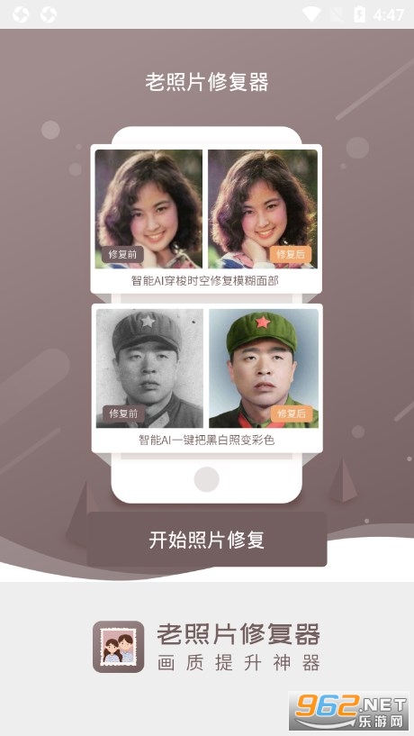 《老照片修复器app》是一款功能强大的照片图片修复处理软件,受损照片老照片修复画质升级,还原青葱岁月,这是一款专注于老照片修复翻新的软件,能一键修复提升画质。也可以为你的黑白照片上色,将照片漫画化,功能非常齐全,需要的朋友可以直接点击下载安装。