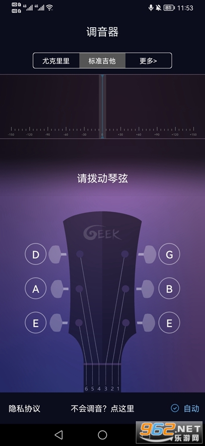 吉他调音器是当下全球最实用的免费调音器包括吉他和尤克里里,它通过独特的乐音识别技术智能识别琴音,即使在嘈杂的环境中亦可清晰的识别,它以极简而又独具人性化的方式自动调音,让吉他调音变得如此方便简单,随时随地,妙不可言。