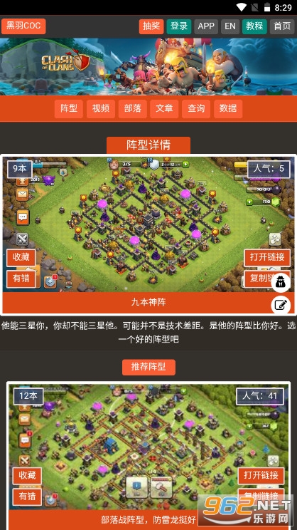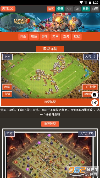 为大家带来这款非常好用的黑羽部落冲突阵型分享软件,所有的部落阵型分享都是完全免费使用的,玩家们可以自由的选择当前的本阵阵型,从1-14的所有阵型都涵盖在其中,相当的全面。