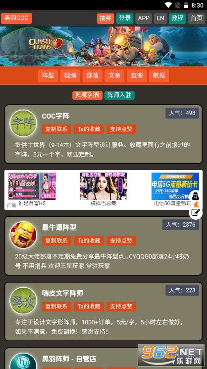 《黑羽部落冲突阵型分享软件》拥有最全面的部落冲突游戏阵型分享,能够很好的帮助各位在玩部落冲突的游戏玩家们更加全面的了解部落冲突目前14本阵型的所有具体排列组合,能够让各位在游戏的阵容组合搭配上更加得心应手,觉得不错的话赶快来下载吧。