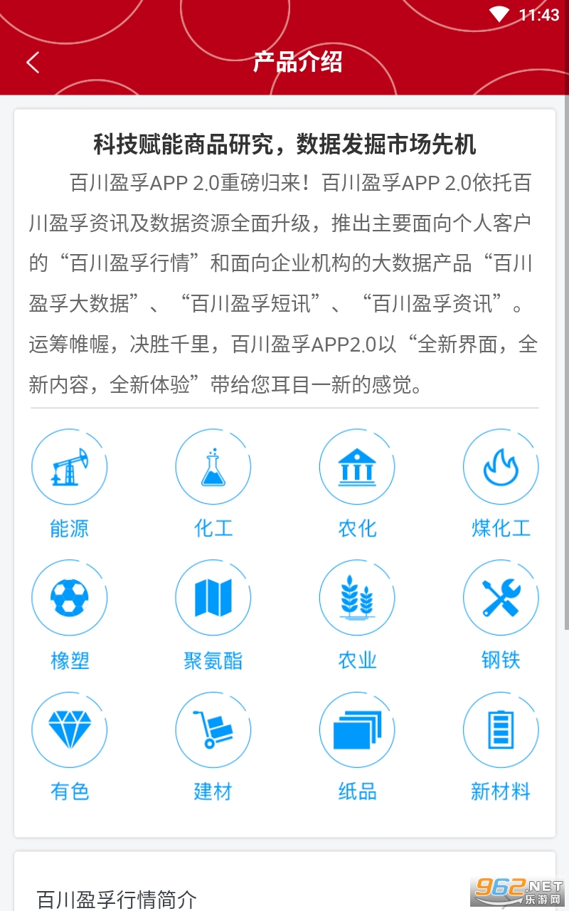 《百川盈孚APP》是一款非常具有专业性质的信息服务平台,主要面向中国的大宗商品交易市场,有着非常专业的数据整理以及分析,帮助大家更加的了解整个行业目前的水平以及动向,感兴趣的亲们赶紧下载吧。