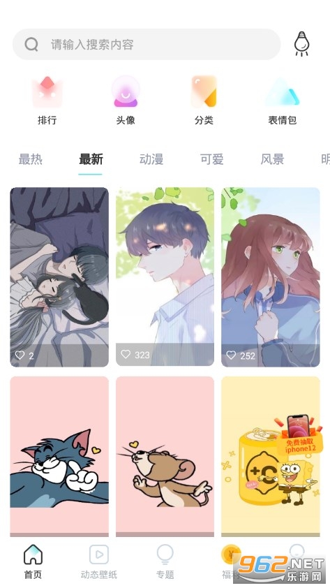1、这里不仅有各种壁纸资源,还有超多热门的头像,不管是情侣头像还是卡通头像都有;