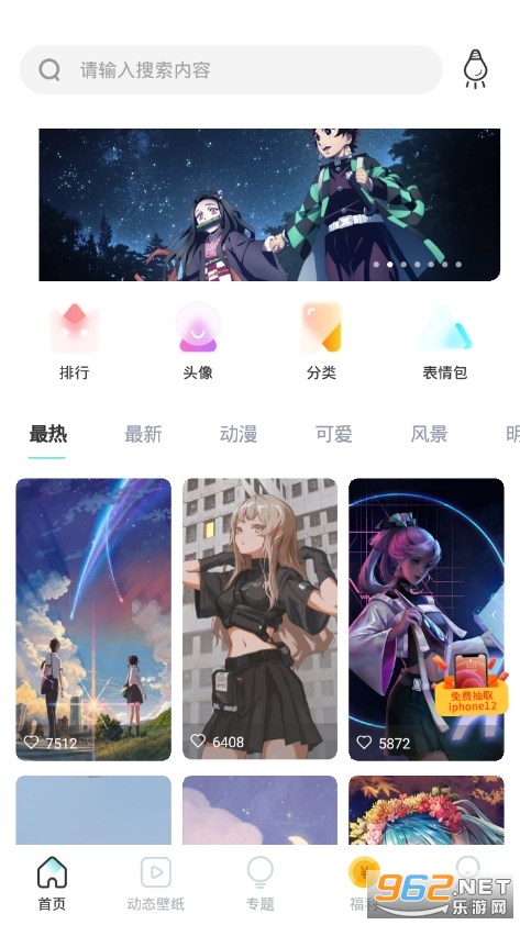 很多人都在使用的优质壁纸资源库软件,网罗全网热门超高清优质头像壁纸,动漫壁纸、情侣壁纸、头像大全、王者荣耀壁纸、和平精英吃鸡个性壁纸等等各种分类,更有丰富的表情包,只有你想象不到的,没有你下载不到的!海量壁纸供你选择,做与众不同的自己。