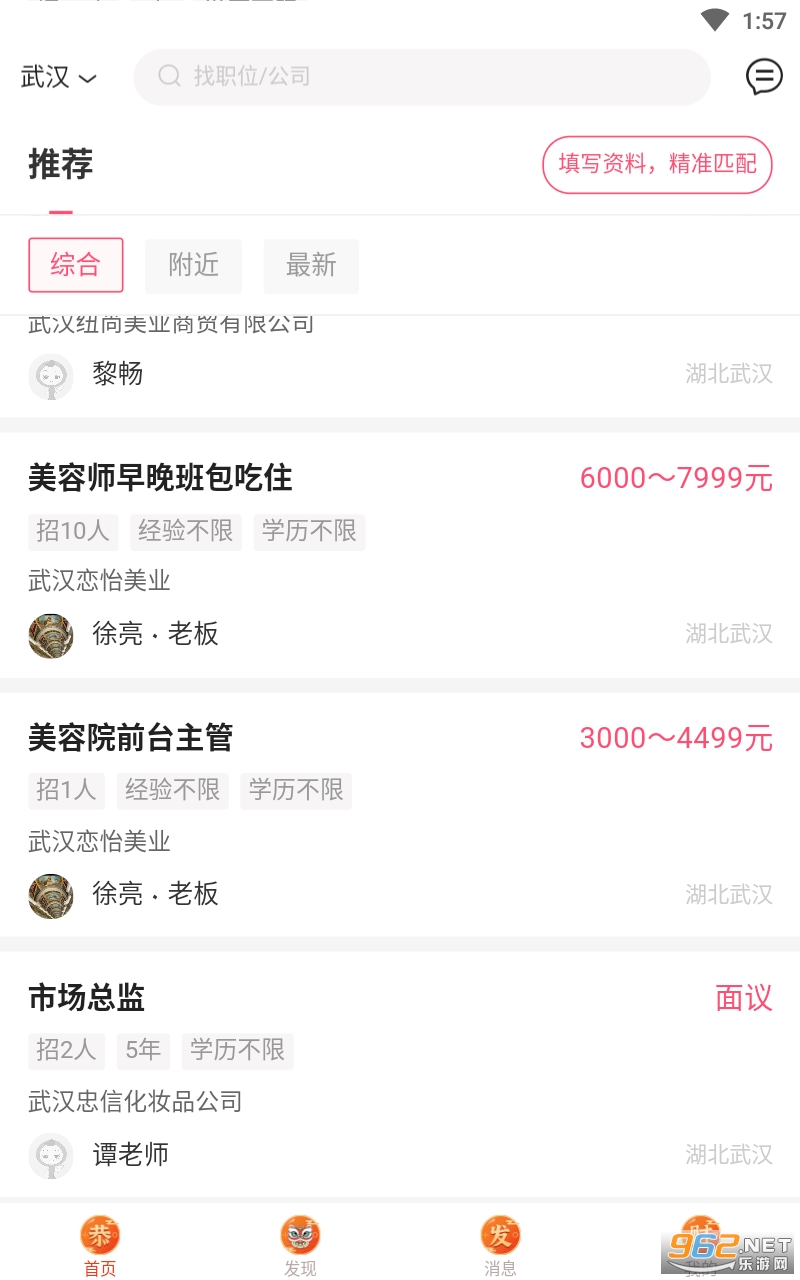 【求职】可以在线与招聘雇主在线聊工作;查看附近高薪好工作;