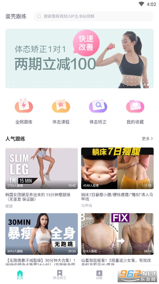 针对女性体态专项问题提供矫正塑身体跟练计划,例如各种腿型问题、马甲线、一字肩、天鹅臂、瘦腿、蜜桃臀、收副乳、生理期运动、产后修复,在蛋壳跟练APP,推出简单有效的塑身跟练计划,让你在短短几周内足不出户,就能在家完成塑身目标,变美丽更健康。