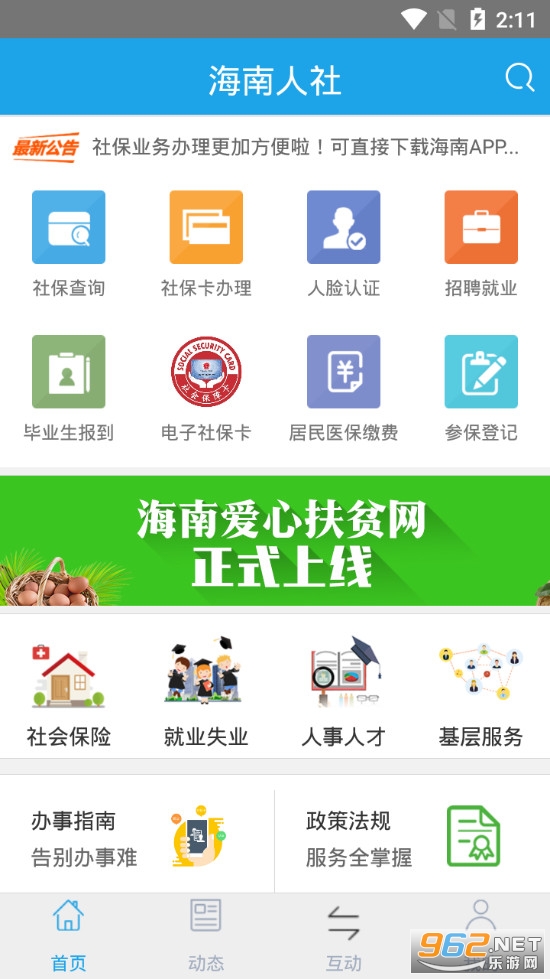 海南人社是海南省人力资源和社会保障厅指定的一款掌上便民应用,基于“移动互联+便民生活”设计理念,集成社保查询、社保卡业务服务、医保服务、招聘就业、生存认证等便民服务,旨在打造“智慧海南人社”掌上便民服务平台。