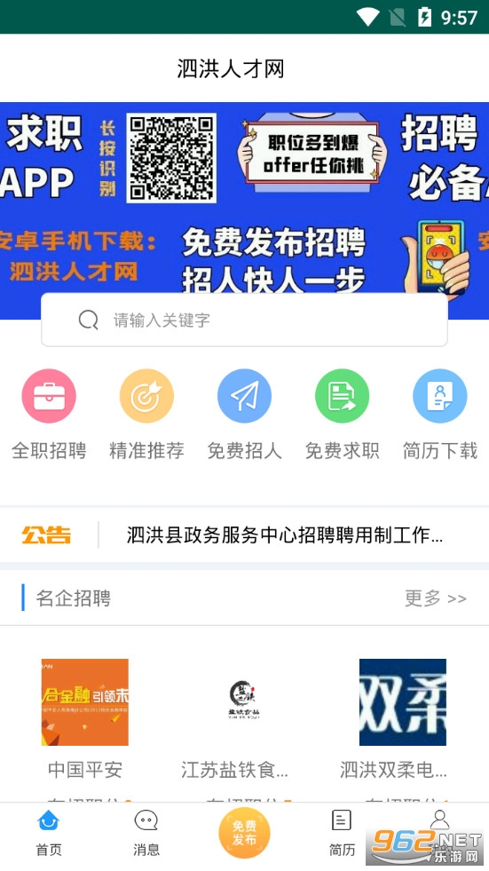 泗洪人才网app为用户提供方便快捷的找工作平台,为每一个用户找到合适的工作而奋斗,帮助用户找到自己所期望的工作。可以一键保存,随时更改,还能置顶自己的信息哦,零风险,零预付,随时做你专属的HR,覆盖广泛的城市,随时找到心动职业。