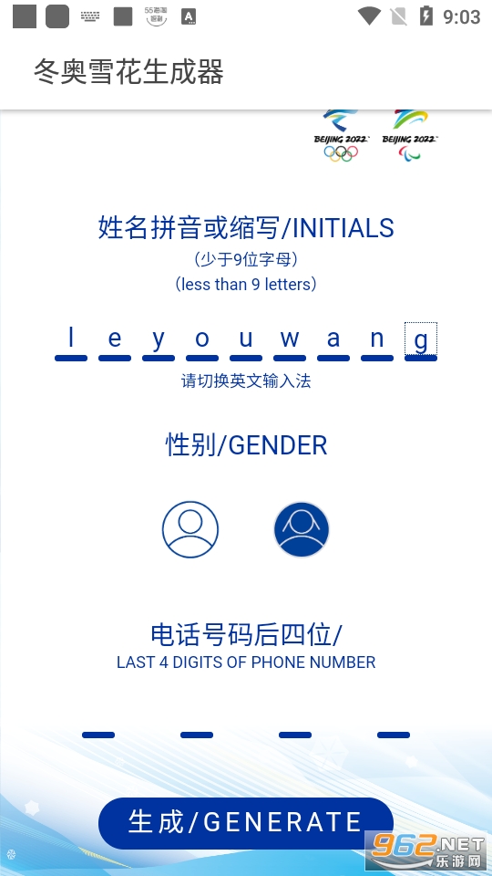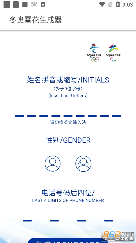 直接通过你的名字性别以及手机尾号来生成与众不同的2026北京冬奥会雪花图案,操作方式非常简单,只需要填写相关的信息点击生成就可以进行生成专属的图案,扫描二维码或者是直接下载都可以了。快来试试吧!