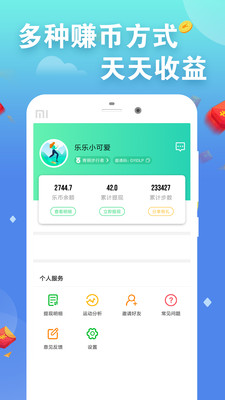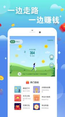 走财运健步上传今日步数,点击同步后,每一步都可以赚钱,走的越多,赚的越多,一边走路一遍赚钱,有钱的生活走出来!