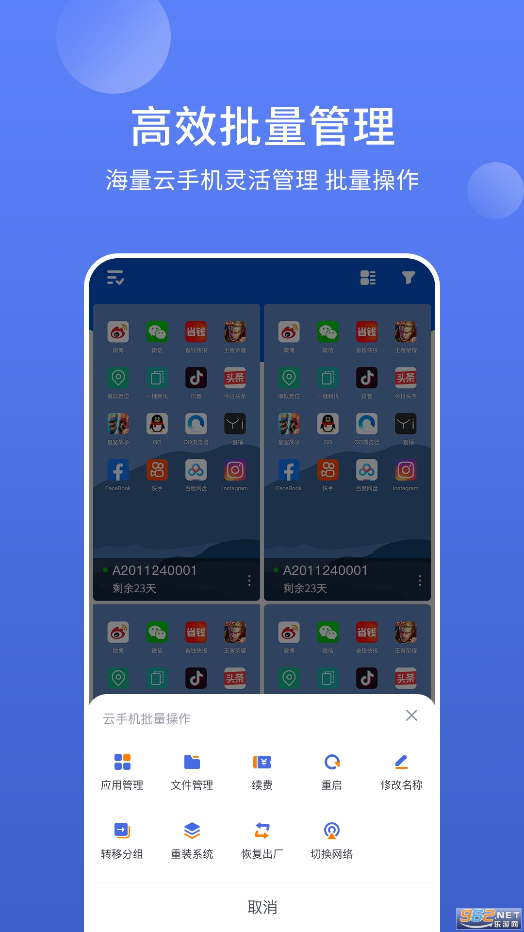 《华云云手机app》是一款非常给力好用的云手机平台,这里为用户提供非常好用的云手机平台,不但操作起来非常简单轻松,还有超多低价活动等你来参与,不受手机配置的限制,再烂的手机也能玩大型游戏,感兴趣的朋友欢迎来962下载体验试试吧!
