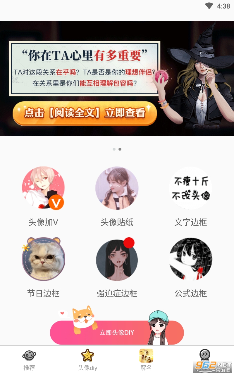 【DIY头像】不想自己的头像千篇一律?那就来定制一款专属于你的头像,定制一款属于你俩的专属情头。选择相册中自己中意的一张照片,开启你的头像设计!加文字、头像贴纸、头像加V、文字边框、强迫症边框、公式边框,操作便捷,让你的头像与众不同。