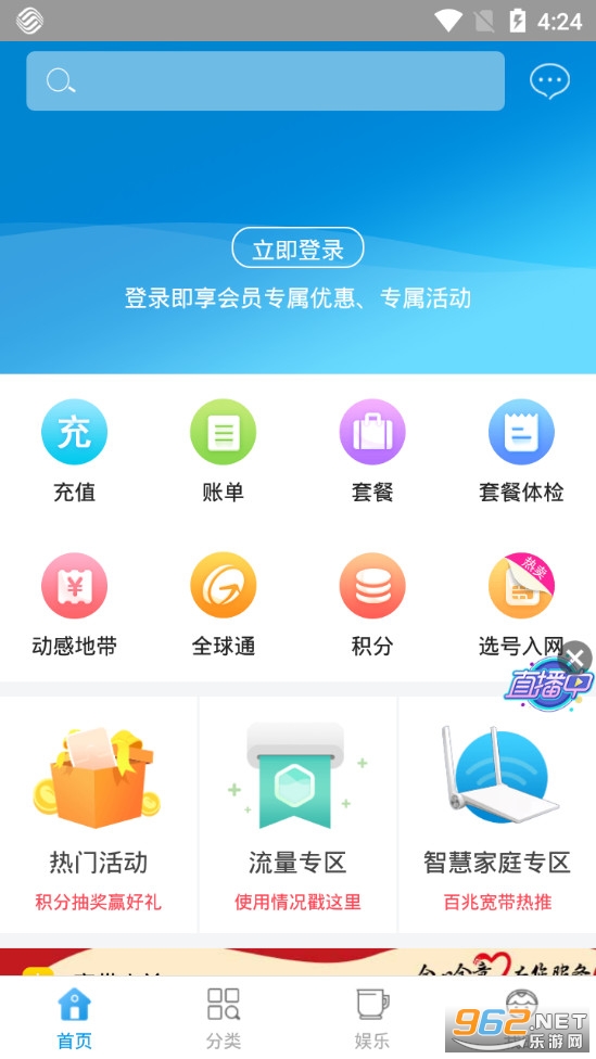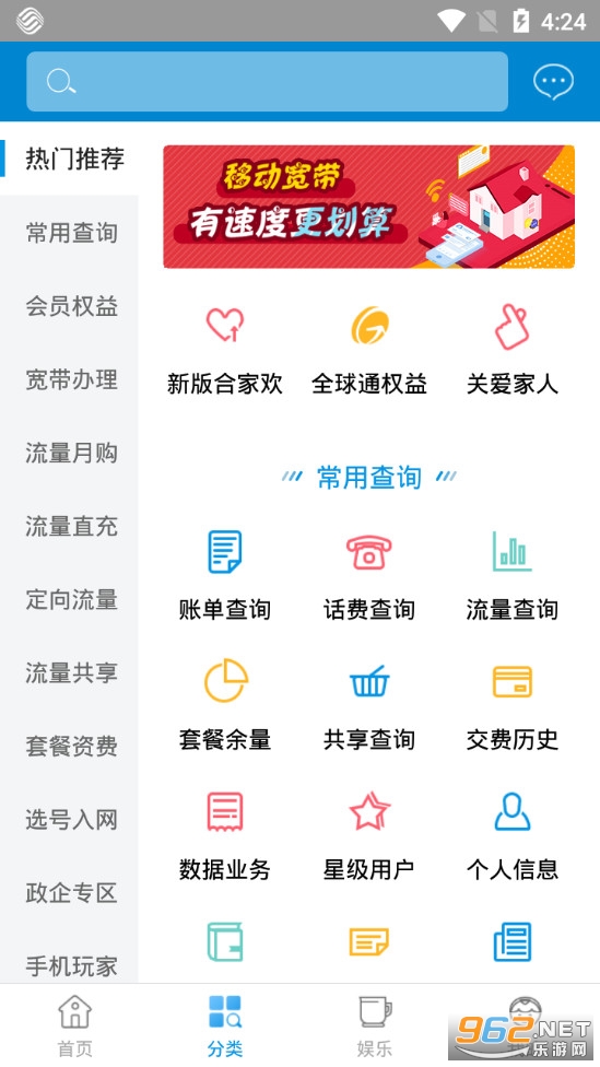 全新推出亲密付、宽带专区、实名登记、营业厅查询、WLAN热点查询、授权店验证、标识权益等特色应用,方便您轻松了解,一触即知;