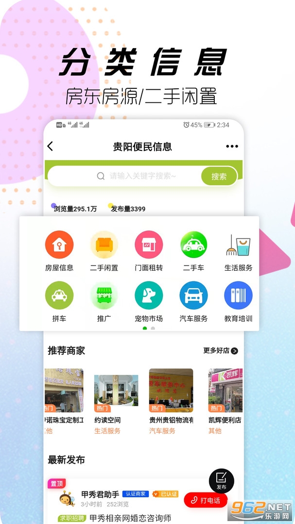 3、分类信息,房东房源,二手闲置,都可以便捷了解。