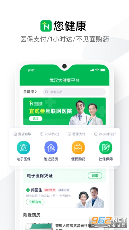 “您健康”APP是一款提供线上问诊、购药、医保支付、配送及客户服务等功能的综合服务平台,平台将引入优质零售药店和医疗机构资源,为参保人员提供线上互联网+医保服务。