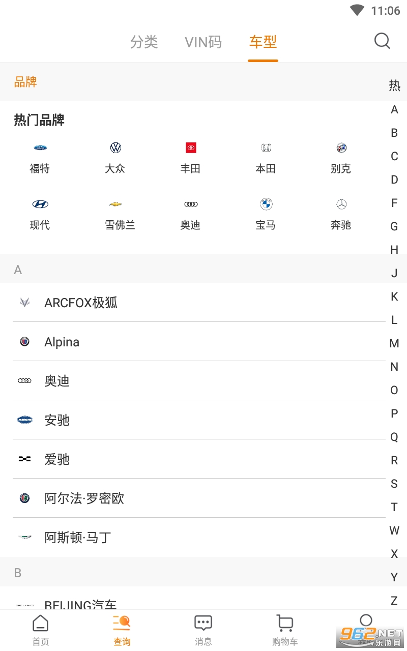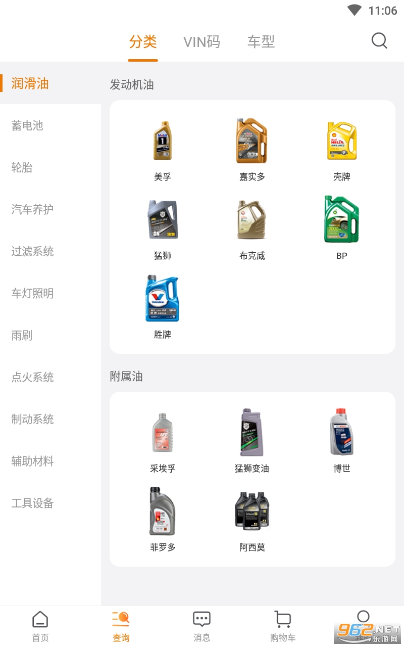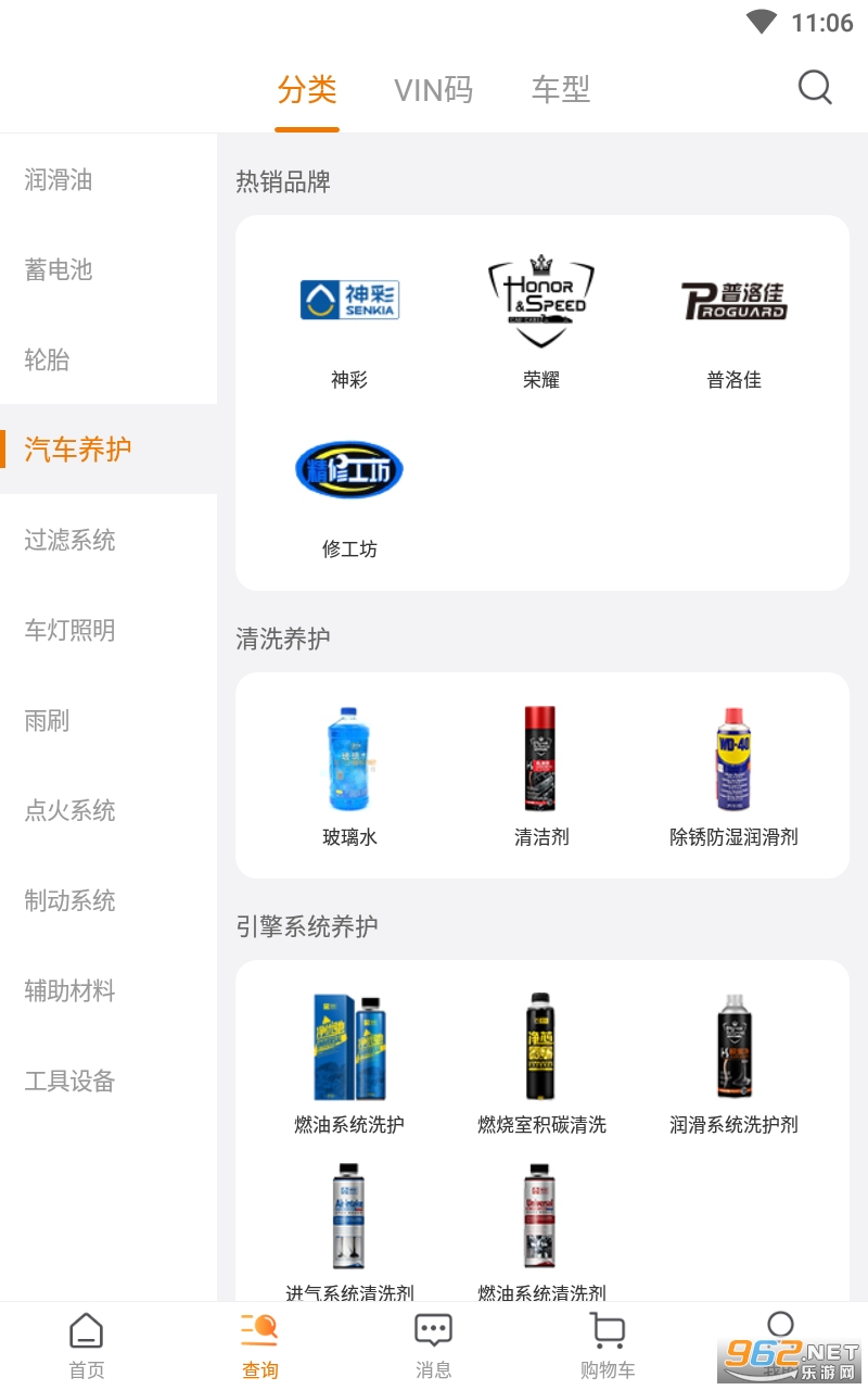 1.车型配件一键查询,支持分类查询、VIN查询、车型查询。