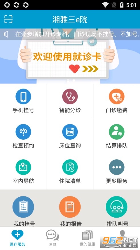 湘雅三e院为中南大学湘雅三医院的官方应用,是湘雅三院便民信息网络通体系建设项目之一,由浙江和仁科技股份有限公司承建,该应用以移动互联网终端为载体,服务内容涵盖院前、院中、院后三个环节,可简化患者就医流程,方便患者就医。