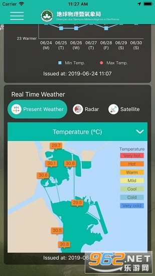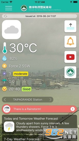 《澳門天氣app》是一款非常给力好用的天气预报软件,这里为用户提供最好最棒的天气预报平台,操作也方便,安装也简单,这里的天气信息不仅有今天的,而且明天的以及未来一周的天气信息这里都有,感兴趣的朋友还在等什么?欢迎来962下载吧!
