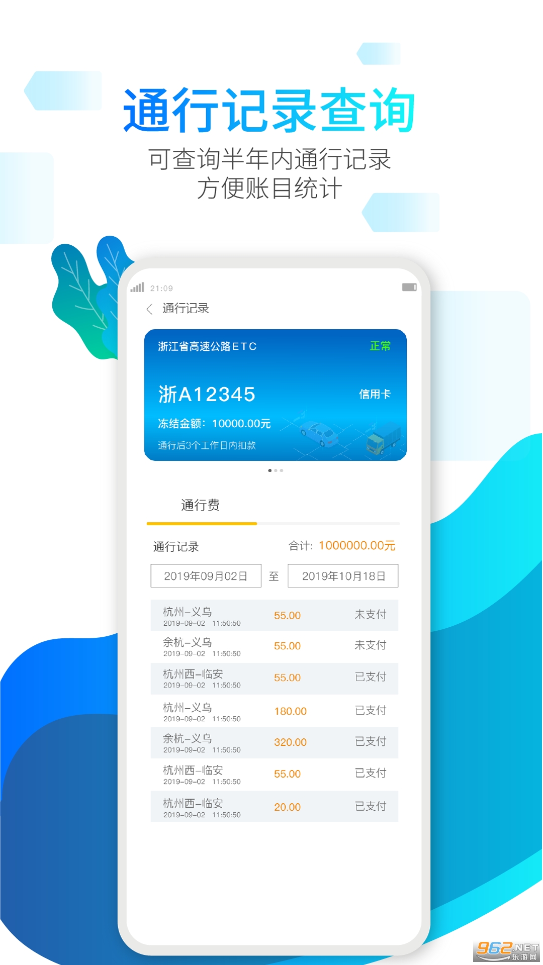 【通行账单】提供通行账单查询,通行时间,通行出入口,通行费,简单明晰,180天内可查询